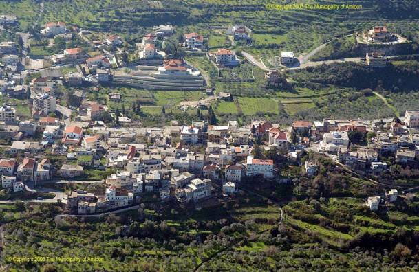 Aerial picture of Amioun (courtesy amioun.org) showing both my current house and the ancestral house (on the cliff)